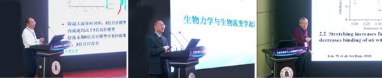 共有9位专家在论坛上做了主题报告。王丽珍教授代表民政部国家康复辅具研究中心主任樊瑜波教授做了“康复辅具创新:从基础到应用”的大会发言,她全面系统地介绍了康复辅具领域的最新基础研究和应用成果,特别突出了生物力学在其中的核心地位;齐颖新教授报告了细胞核骨架在应力诱导血管重建中的作用,发现病理条件的高张应变抑制VSMCs核骨架蛋白的表达后会促进VSMCs凋亡;季葆华教授对机械应力在调节细胞收缩、极性和排列等方面的作用做了精彩的报告;宋关斌教授介绍了流体剪切力、机械拉伸和骨桥蛋白(OPN)对骨髓间充质干细胞的迁移和侵袭等生物学行为的调控及其相关分子机理;我院青年教师曾烨副研究员报告了他的最新研究成果,特别是流体剪切力对血管生成的影响及其调控机制方面的工作;龙勉教授报告了他们在白细胞-内皮细胞相互作用的多尺度生物力学方面的研究成果;吴建华教授对血小板-白细胞相互作用的若干力学生物学问题做了系统介绍;刘有军教授报告了冠状动脉瘤右冠好发、扩张性心肌缺血的血流动力学机制及其数值模拟及其冠脉瘤搭桥手术治疗策略等最新成果;刘肖珩教授以“从生物力学和生物流变学到力学生物学”为题,介绍了我院生物医学工程研究室的发展历程、研究方向、取得的研究成就,以及下一步的工作思路。