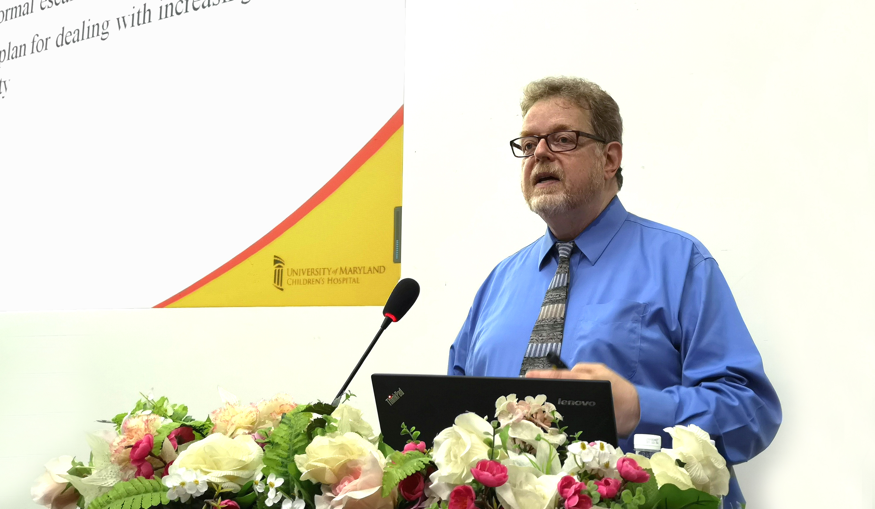 Steven J.Czinn教授带来了的题为“Collaboration to Create a Patient Safety Net for Hospitalized Children—Pediatric Early Warning System & Rapid Response Team”的学术报告。Czinn教授作为从事儿科临床医生工作30余年的专家,从实际案例出发,着重介绍了建立儿科早期预警系统的重要性,并给出了详细的评分标准,为该预警系统的应用奠定理论基础。同时,Czinn教授也指出成立儿科急症快速处理小组对处理危患儿症状,挽救病患儿生命是非常必要的。