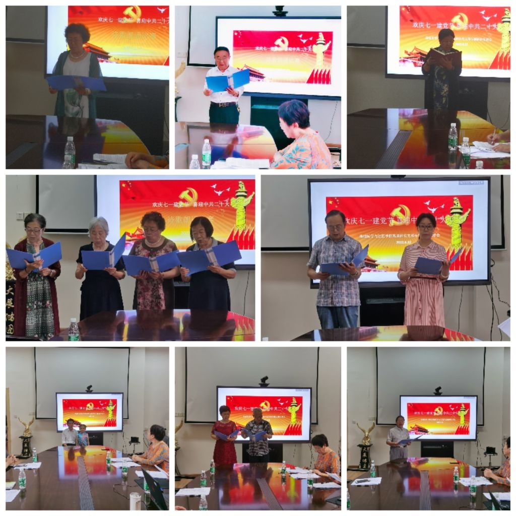 专题组织生活会在集体朗诵《我骄傲,我是中国人》和齐唱《没有共产党就没有新中国》中圆满结束。此次“欢庆建党节、喜迎二十大”专题组织生活会展现了学院离退休党员同志积极进取,奋发向上的精神风貌,同时增强了理想信念,厚植爱国爱党情怀。大家以此次专题组织生活会为契机,从党课中加强党性教育,从诵读比赛的红色经典中汲取精神力量,进一步加深对中国共产党的热爱之情,感党恩、听党话、跟党走,激励离退休教师为党和国家的教育事业,为学校和学院的建设和改革发展继续发挥余热,做出贡献。