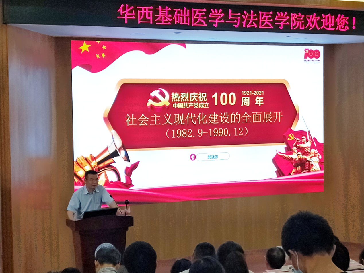 党委副书记、纪委书记郭晓伟作《社会主义现代化的全面展开(1982.9—1990.12)》党课报告。郭晓伟同志系统地回顾了党的十二大、十三大召开的背景及意义,对期间面临的挑战、主要的成就进行了一一梳理。他讲到,这一时期对国家发展起到了举足轻重的作用。经济体制、科学技术体制和教育体制的改革、对外开放、“一国两制”和外交方针的形成为国家的发展壮大奠定了坚实的基础。