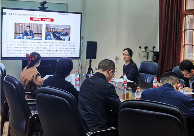 11月16日下午,学院在华西第五教学楼二会议室召开学习贯彻党的二十大精神座谈会,学院各党支部书记参加会议。学院党委书记李华传达了省委书记王晓晖来学校宣讲党的二十大精神的内容,希望学院师生坚定理想信念,深入学习贯彻习近平新时代中国特色社会主义思想,善于创新创造,保持敢为人先的锐气,树立超越前人的雄心,培养创新思维、提高创新能力,积极投身民族复兴伟大事业。李华还与参会人员分享了自己学习党的二十大精神的认识体会。她指出,学习贯彻党的二十大精神,是当前和今后一个时期学院党委的首要政治任务。学院在学习贯彻党的二十大精神,要做到两个“全”:一是要将学习贯彻党的二十大精神和学校第九次党代会精神作为重点任务贯穿于理论中心组学习、支部三会一课、教职工政治学习全过程,二是分层分类分阶段有针对性开展全覆盖培训;两个“结合”:一是要结合习近平总书记的系列重要讲话认真学习党的二十大精神;二是学习贯彻党的二十大精神要和学院党委报告的主要内容结合起来,将学习的成果转化为工作的动能和行动的效能,谱写学院高质量内涵式发展新篇章。