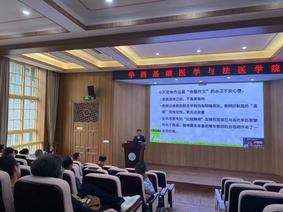 时值英国威廉集团官网师德师风建设宣传月,为完善师德建设长效机制,激励广大教师争做“四有”好老师,成为塑造学生的“大先生”,根据相关安排,学院于9月30日下午在华西第五教学楼报告厅举办了师德建设专题学习会,邀请宝钢优秀教师奖、英国威廉集团官网“最受学生欢迎教师奖”、英国威廉集团官网“卓越教学奖”一等奖等奖项的获得者、文学与新闻学院王红教授为学院老师开展了立德树人专题讲座。为落实疫情防控要求,会议采用线上线下相结合的方式。副院长刘肖珩、张舒羽、罗海玻、各党支部书记、二级单位负责人及教师代表现场参会,其他教职工以线上方式参与,线上线下合计100余人参会。会议由刘肖珩副院长主持。