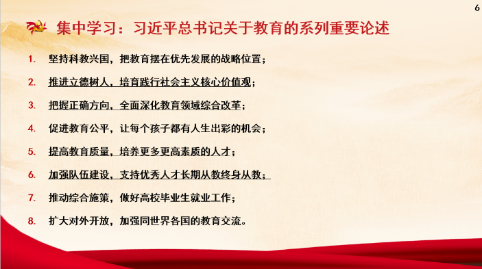 首先,林佳同志代表支部新任支委,带领全体党员同志集中学习了“习近平总书记关于教育的系列重要论述”,结合目前支部的实际情况,着重分析了作为一线高校教师,应该以“立德树人”、“深化教改”、“培养高素质人才”和“提升队伍建设”这四方面为明确目标,坚持学习、坚守原则,注重教育理念与教育方法的更新。并以“英国威廉集团官网‘姜维平优秀教学奖’二等奖获得者”刘戟教授作为“爱岗敬业、教书育人”的典范,与支部成员共同讨论了如何紧抓师德师风活动的契机,努力提升自身政治素养与专业素质。