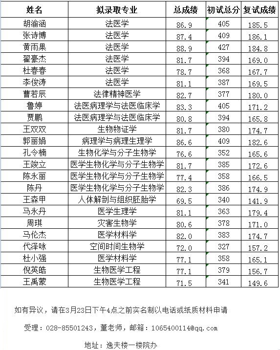 如有异议,请在3月22日下午5点之前实名制以电话或纸质申请 受理:028-85501305 地址:逸夫楼一楼1-3