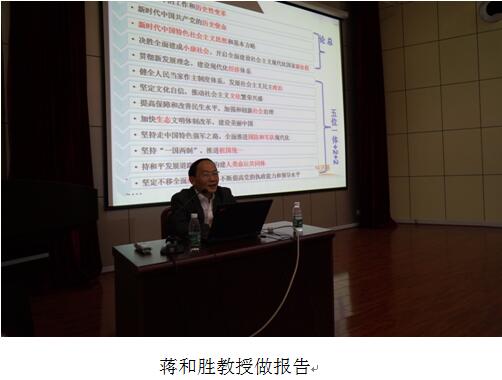 2017年11月15日下午,我校学习贯彻党的十九大精神宣讲团专家成员、经济学院蒋和胜教授应邀莅临我院做宣讲报告。